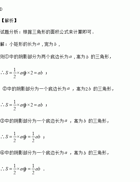 如图将四个全等的矩形分别等分成四个全等的小矩形,其中阴影部分面积相等的是( )
