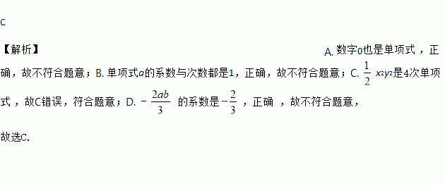 A. 数字0也是单项式 B. 单项式a的系数与次数都是1