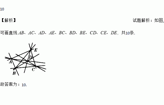 如图,在同一平面内有A,B,C,D,E五个点,过其中任意两点画直线最多可以画________条.