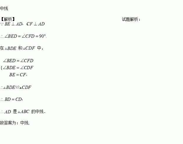 如图,已知BE⊥AD,CF⊥AD,且BE=CF.那么AD是△ABC的_______.(填“中线”或“角平分线”)
