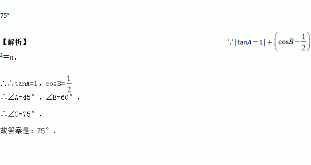 在锐角△ABC中,如果∠A,∠B满足|tanA-1|+=0,那么∠C=________.