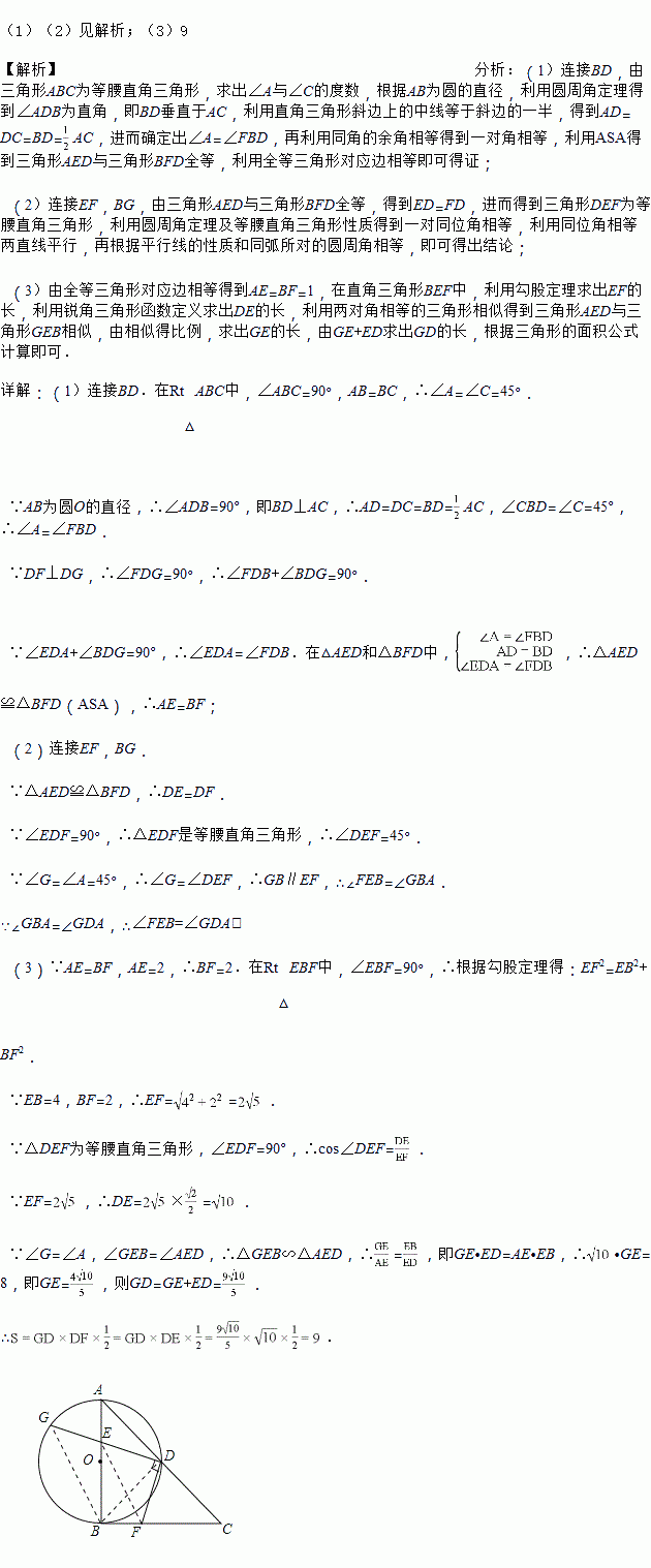 (3)连接GF,若AE=2,EB=4,求ΔGFD的面积.
