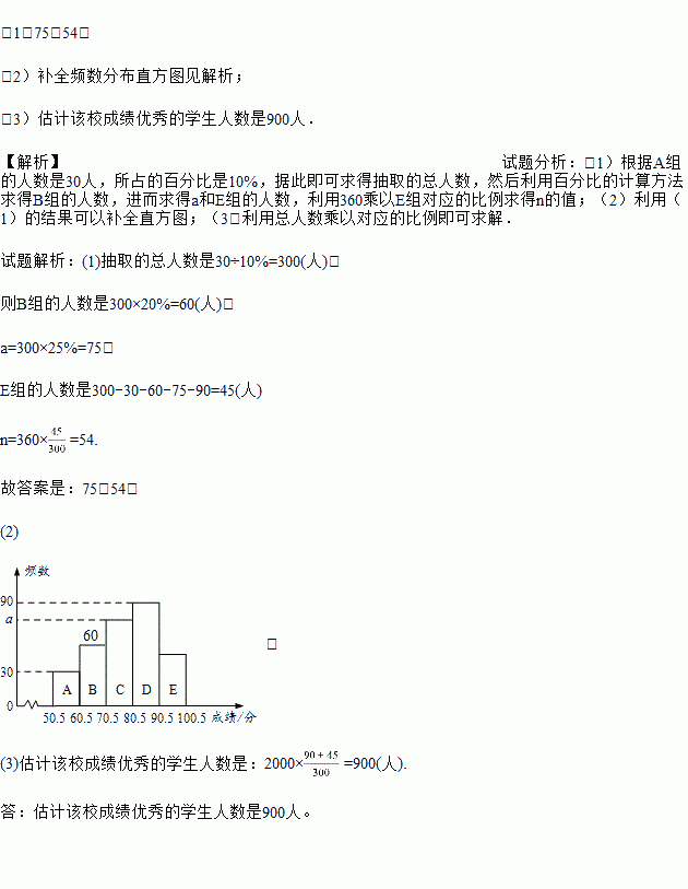 (3)该校共有2000名学生.若成绩在80分以上的为优秀,请你估计该校成绩优秀的学生人数.