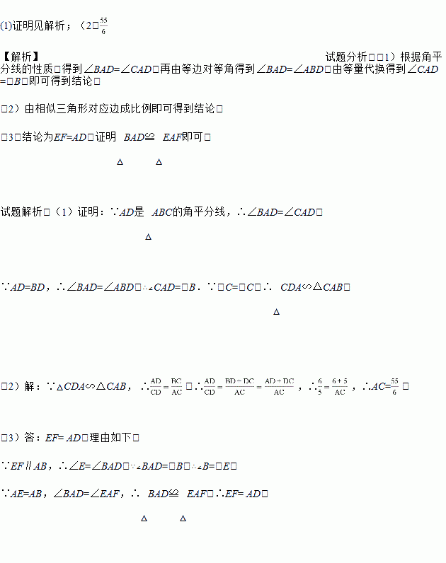 (3)如图2,延长AD至E,使AE=AB,过E点作EF∥AB,交AC于点F,试探究线段EF