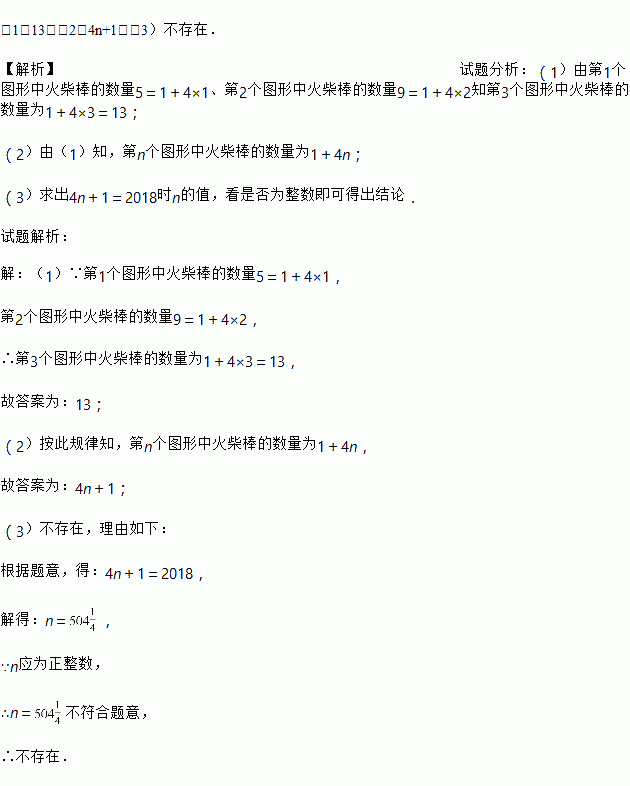 (3)按此规律,是否存在第n个图有2018根火柴棒?若存在,请求出n的值;若不存在,请说明理由.