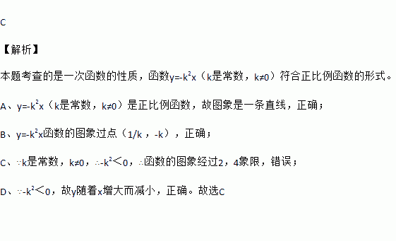 对于函数y=-k2x(k是常数,k≠0)的图象,下列说法不正确的是()