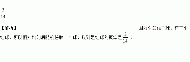 一个暗箱里放入除颜色外,其它都相同的3个红球和11个黄球,搅拌均匀后,随机任取一个球,取到的是红球的概率是 .