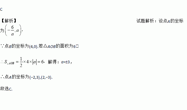 在平面直角坐标系xOy中,A为双曲线上一点,点B的坐标为若的面积为6,则点A的坐标为