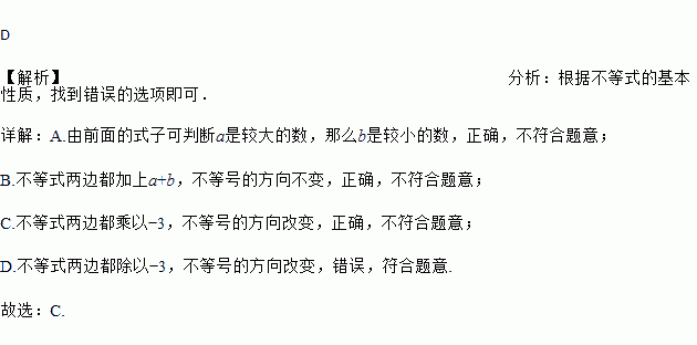 C. 由->y,得x<-3y D. 由-3x>a,得x>-