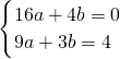 把A(4,0),D(3,4)代入y=ax2+bx中,