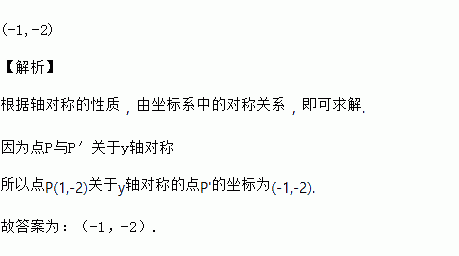 点P(1,-2)关于y轴对称的点P'的坐标为__.