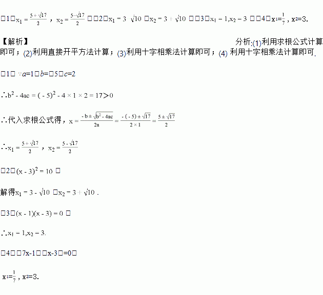(3))x2-4x+3=0; (4)7x(x-3)=x-3.