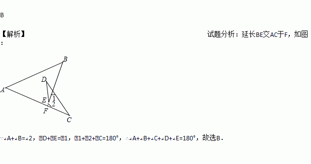 如图所示,∠A+∠B+∠C+∠D+∠E的结果为( )