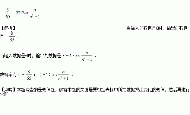 当输入的数据是8时,输出的数据是__,当输入数据是n时,输出的数据是__.