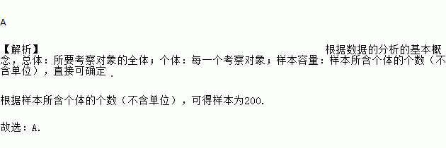 为了解我县七年级2000名学生的身高情况,从中抽取了200名学生测量身高,在这个问题中,样本容量是( )