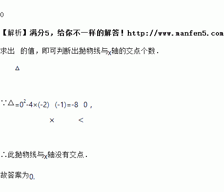 抛物线y=﹣2x2﹣1与x轴有_______个交点.