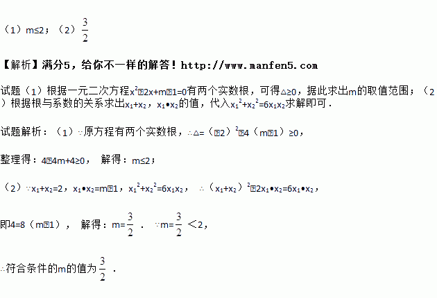 (2)当x12+x22=6x1x2时,求m的值.