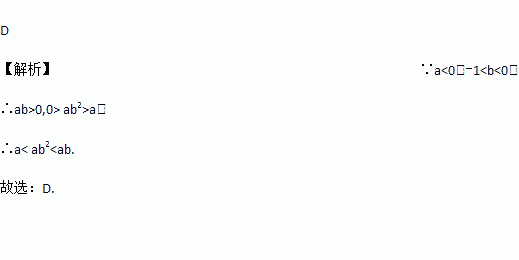 若a<0,-1<b<0,则a,ab,ab2按从小到大的顺序排列为( )
