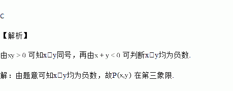 点P(x,y),且xy>0,x+y<0,则点P在( )