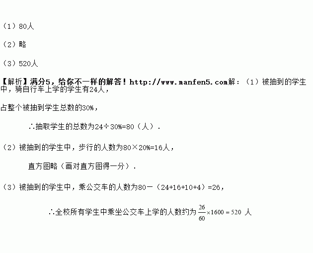 (3)估计全校所有学生中有多少人乘坐公交车上学.