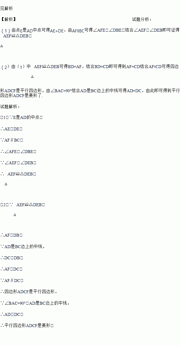(2)若∠BAC=90°,求证:四边形ADCF是菱形.