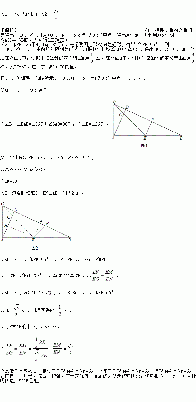 (1)如图1,若AC:AB=1:2,EF⊥CB,求证:EF=CD;