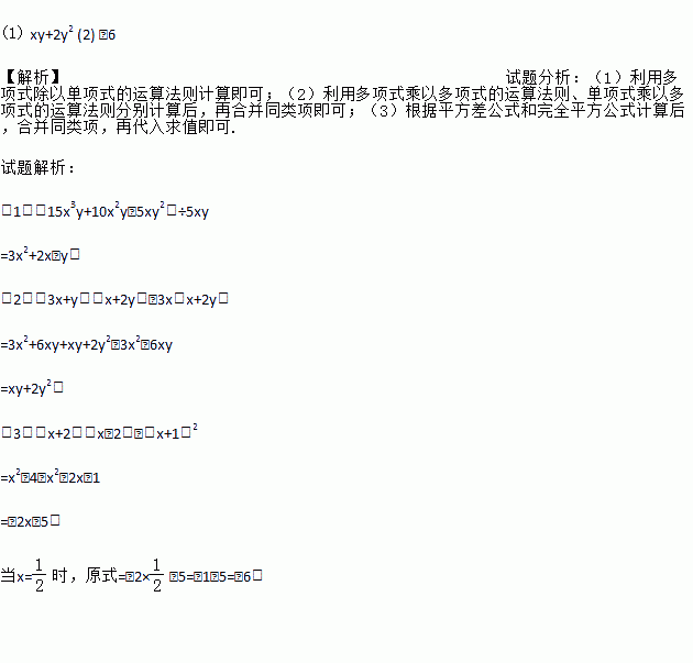 (1)计算:(15x3y+10x2y﹣5xy2)÷5xy