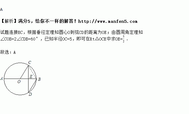 如图,是的直径,弦于点,,的半径为,则圆心到弦的距离为( )