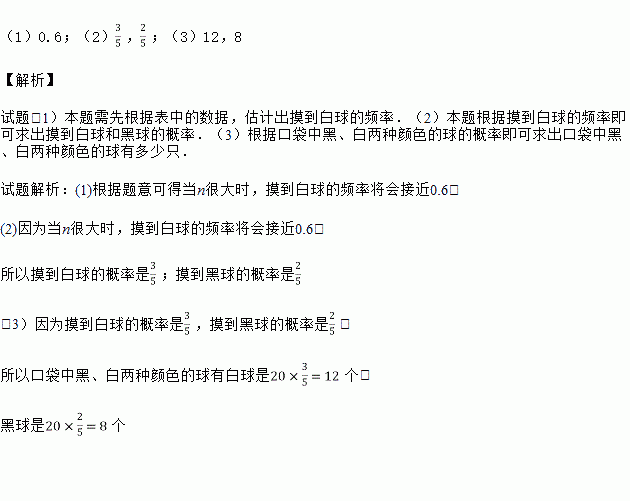 (3)试估算口袋中黑、白两种颜色的球有多少只.
