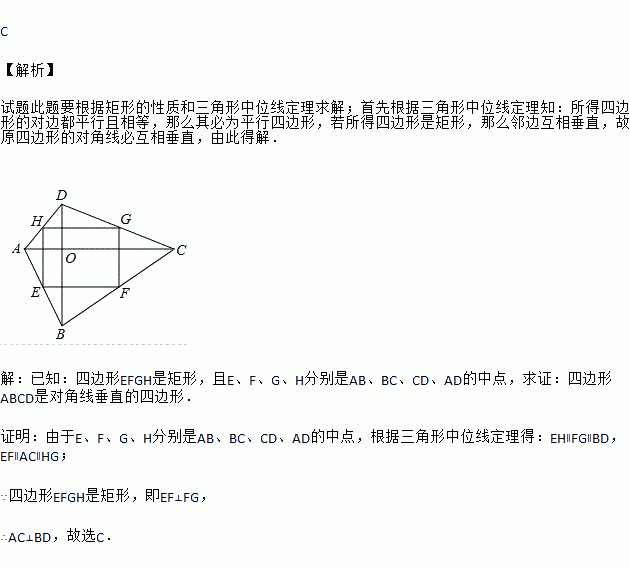 若顺次连接四边形ABCD各边的中点所得四边形是矩形,则四边形ABCD一定是( )