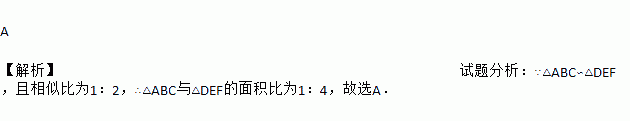 已知△ABC∽△DEF,且相似比为1:2,则△ABC与△DEF的面积比为( )