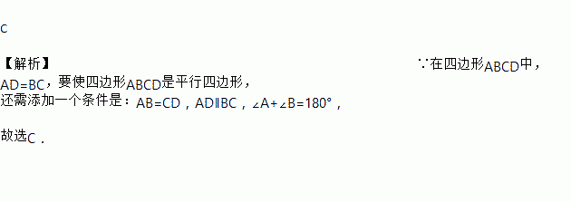 在四边形ABCD中,AD=BC,若四边形ABCD是平行四边形,则还应满足( )