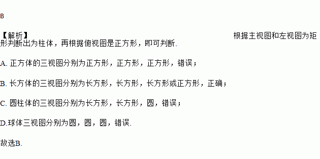 A. 正方体 B. 长方体 C. 圆柱体 D. 球体
