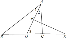 如图,在△ABC中,AD平分∠BAC,P为线段AD上的一个动点,PE⊥AD交直线BC于点E.