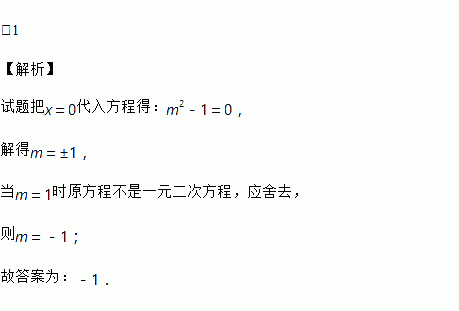 若0是一元二次方程(m﹣1)x2+6x+m2﹣1=0的一个根,则m取值为________.