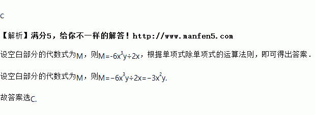 若2x·( )=-6x3y,则括号内应填的代数式是( )