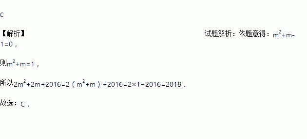 若m是方程x2+x-1=0的根,则2m2+2m+2016的值为( )