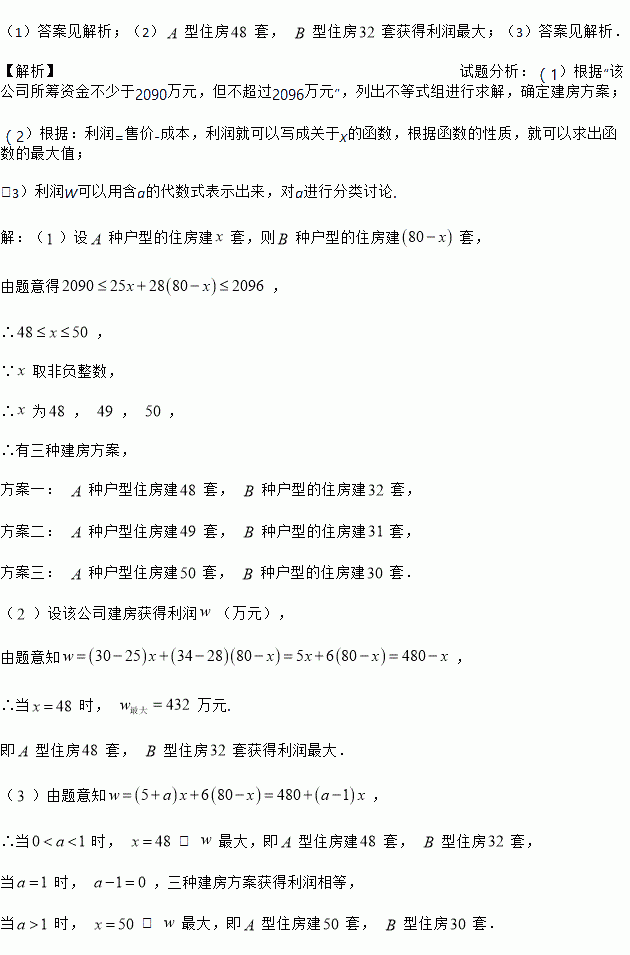 两种户型的住房共80套,该公司所筹资金不少于