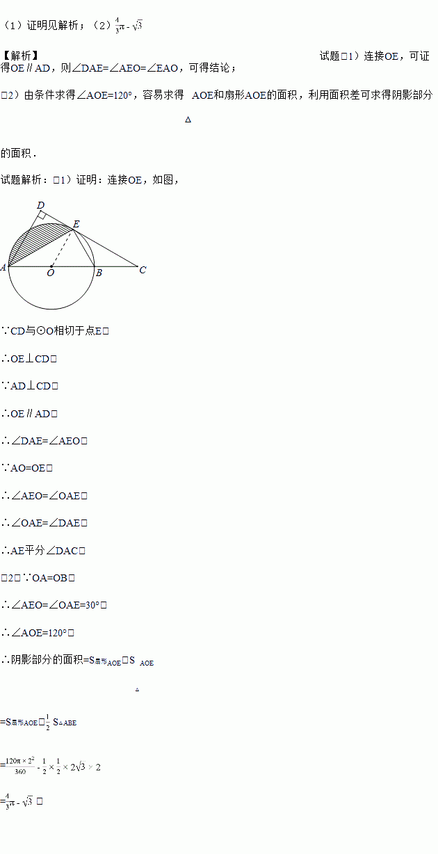 如图,AB是⊙O的直径,C是AB延长线上一点,CD与⊙O相切于点E,AD⊥CD于点D.