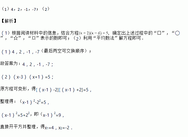 (1)下面是晓东用“平均数法”解方程(x+2)(x+6)=5时写的解题过程.
