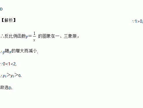 如果两点P1(1,y1)和P2(2,y2)都在反比例函数y=的图象上,那么下列正确的是( )