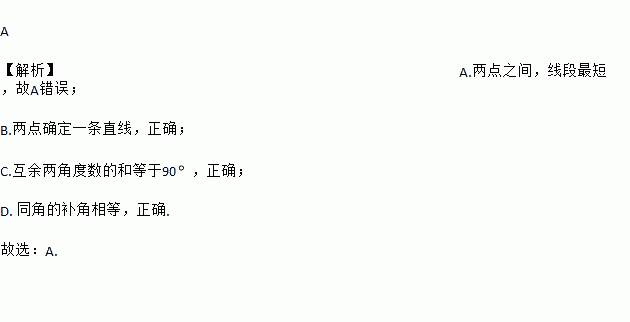 C. 互余两角度数的和等于90 D. 同角的补角相等