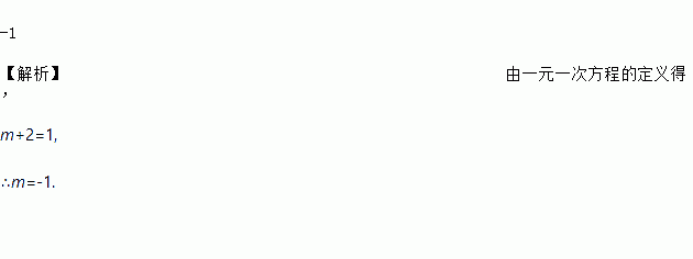 已知等式 是关于x的一元一次方程,则m=____________。