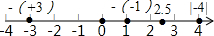 在数轴上把下列各数表示出来:2.5,|-4|,-(-1),0,-(+3)