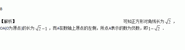 如图,以数轴的单位长度线段为边作一个正方形,以表示数1的点为圆心,正方形对角线长为半径画弧,交数轴于点A,则点A表示的数是( )