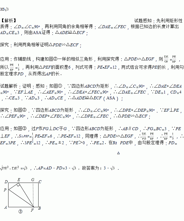(3)应用:如图③,若EF交AB于点F,EF丄PE,其他条件不变,且△PEF的面积是6,则AP的长为_____.