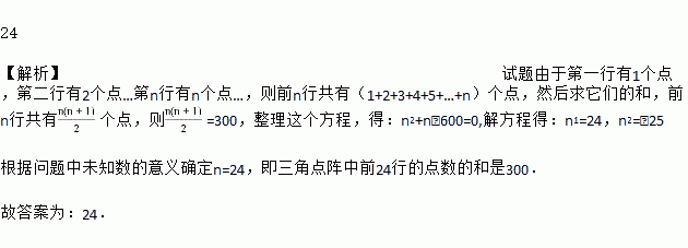 如图是一个三角形点阵图,从上向下有无数多行,其中第一行有1个点,第二行有2个点…第n行有n个点,容易看出,10是三角形点阵中前4行的点数和,则300个点是前______行的点数和.