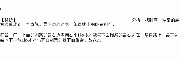 C ¡¾½âÎö¡¿·ÖÎö£ºÕÒµ½Á½¸öͼ°¸µÄ×îÓÒ±ßÒÆ¶¯µ½Ò»ÌõÖ±Ïߣ¬×îϱßÒÆ¶¯µ½Ò»ÌõÖ±ÏßÉϵľàÀë¼´¿É£® ½â´ð£º¡¾½âÎö¡¿ ÉÏÃæµÄͼ°¸µÄ×îÓÒ±ßÐèÏòÓÒÆ½ÒÆ2¸ñ²ÅÄÜÓëÏÂÃæÍ¼°¸µÄ×îÓÒ±ßÔÚÒ»ÌõÖ±ÏßÉÏ£¬×îϱßÐèÏòÏÂÆ½ÒÆ4¸ñ²ÅÄÜÓëÏÂÃæÍ¼°¸µÄ×îÏÂÃæÖØºÏ£¬¹ÊÑ¡C£®