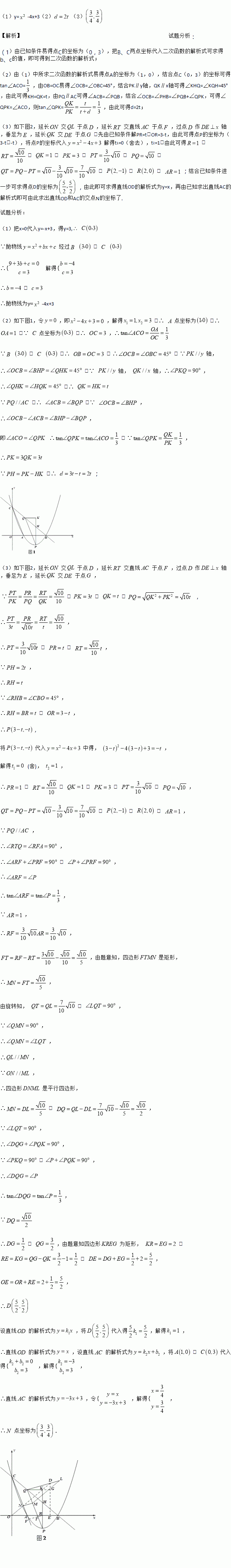 (2)点P是x轴下方抛物线上一点,连接AC,过点P作PQ∥AC交BC于点Q,过点Q作x轴的平行线,过点P作y轴的平行线,两条直线相交于点K,PK交BC于点H,设QK的长为t,PH的长为d,求d与t之间的函数关系式;(不要求写出自变量t的取值范围)