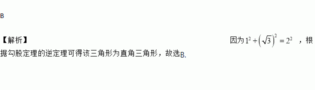 B 【解析】因为 ,根据勾股定理的逆定理可得该三角形为直角三角形,故选B.